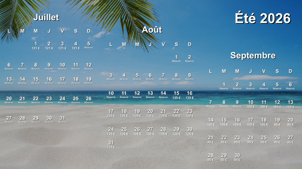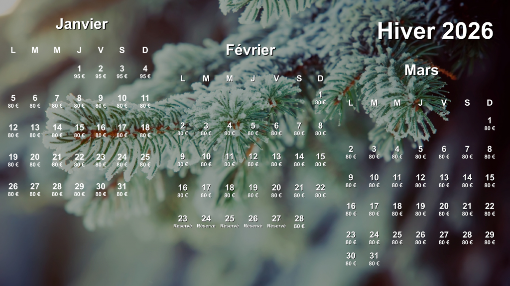 Les dates disponibles dans le calendrier apparaissent en blanc, tandis que les dates non disponibles sont barrées.